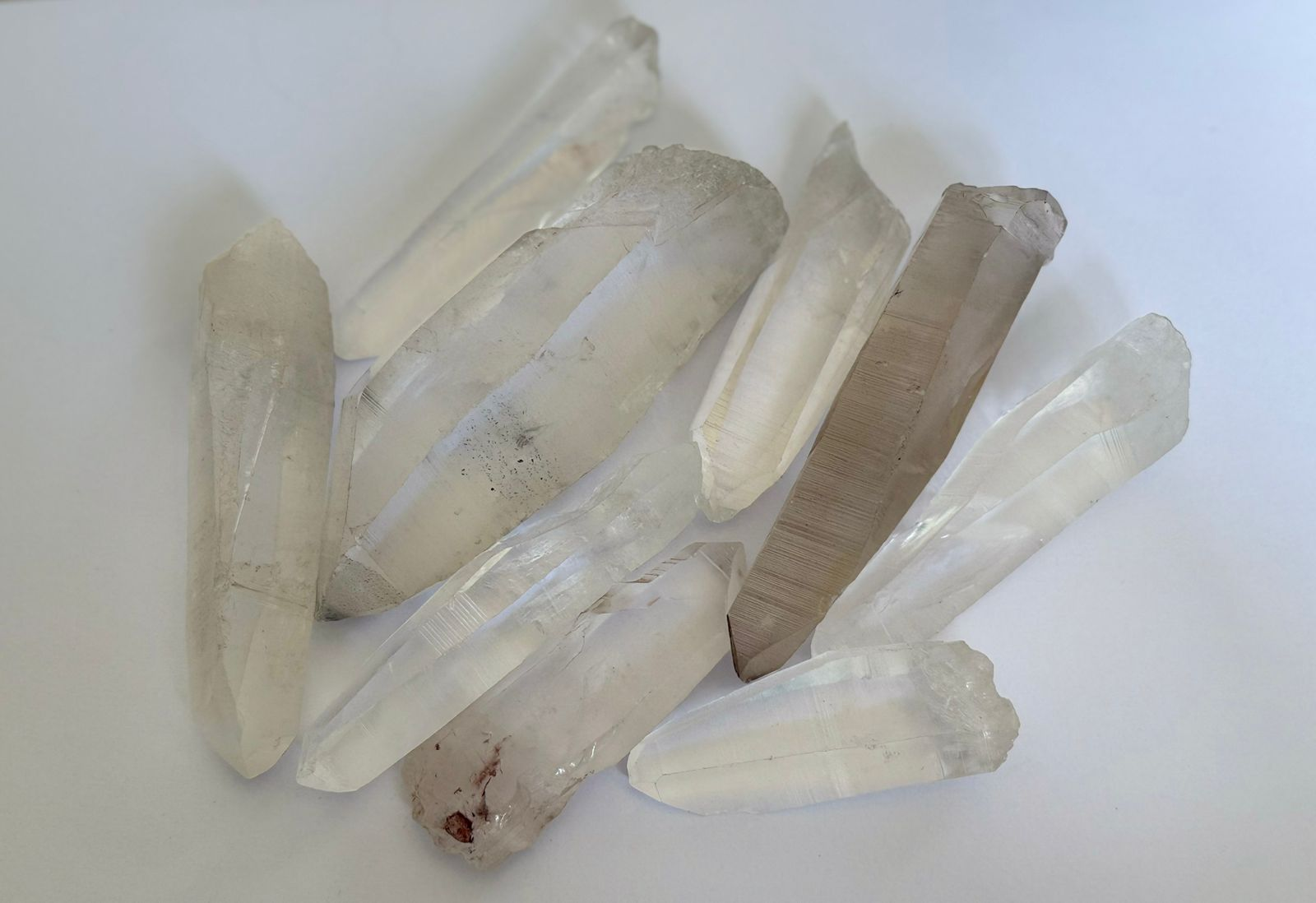 Beautifully clear rough Lemurian Quartz Points from Brazil. The points are minimum 1cm thick and 6cm long and bigger.